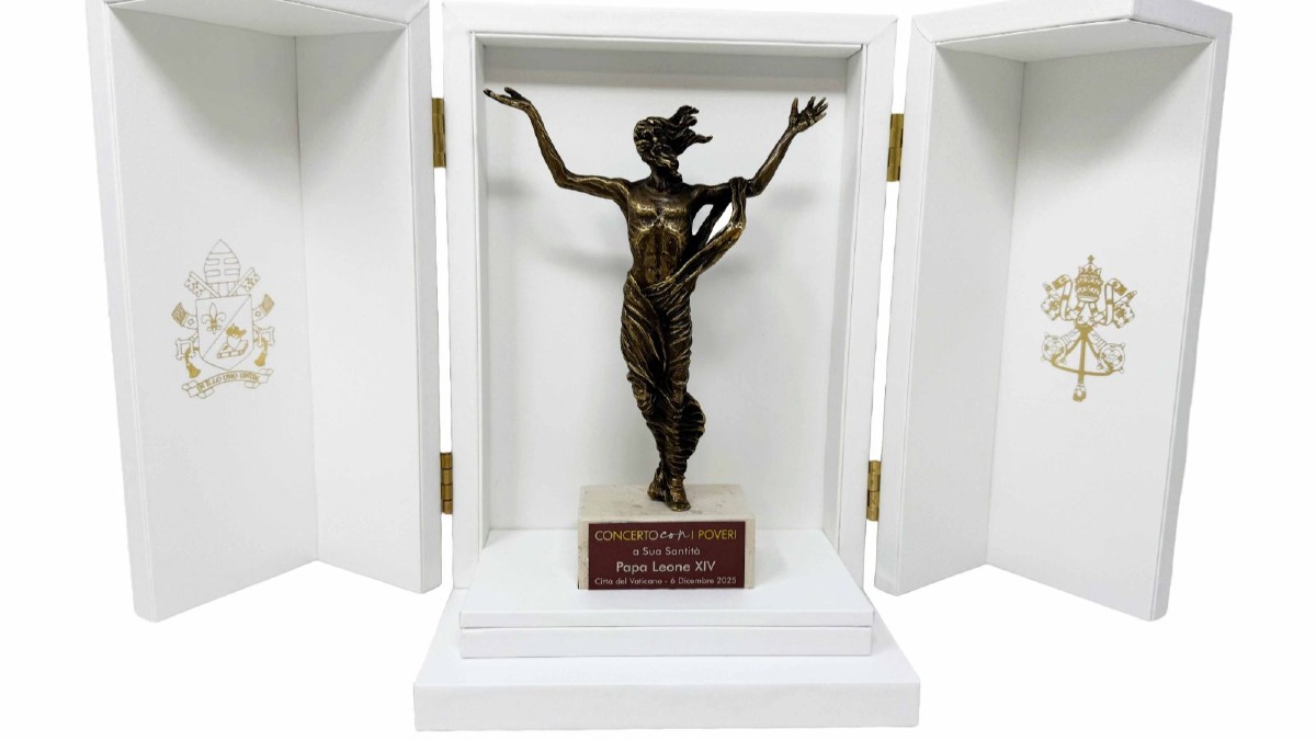 Durante l’incontro, i maestri orafi Michele e Antonio Affidato hanno consegnato al Santo Padre una scultura in bronzo, realizzata appositamente per l’evento, ispirata alla celebre Risurrezione di Pericle Fazzini, simbolo universale della vittoria della vita sulla morte. L’opera, caratterizzata da finezza artistica e profondità spirituale, si inserisce nella tradizione delle creazioni che gli Affidato hanno realizzato negli anni per la Santa Sede. La stessa scultura era già stata donata lo scorso anno a Papa Francesco e al premio Oscar Hans Zimmer, in occasione del Concerto del 2024, a conferma di un dialogo internazionale tra arte, fede e cultura.