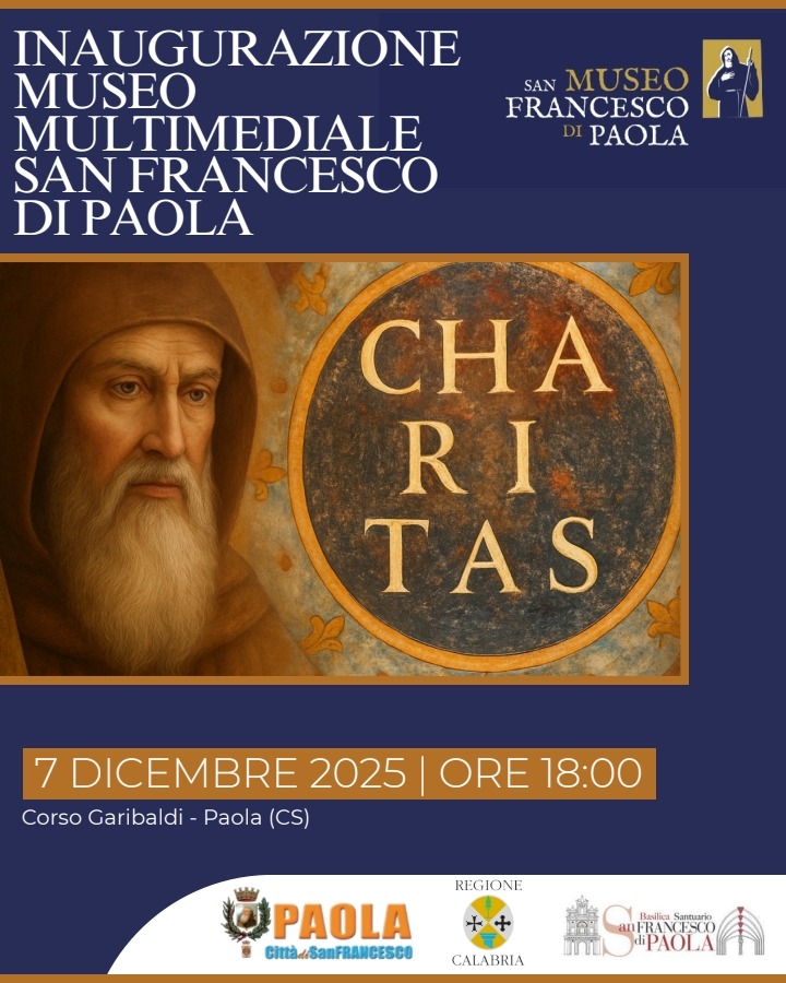 Si terrà Domenica 7 Dicembre, alle ore 18:00 l'inaugurazione del Museo Multimediale San Francesco di Paola in Corso Garibaldi.